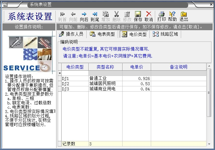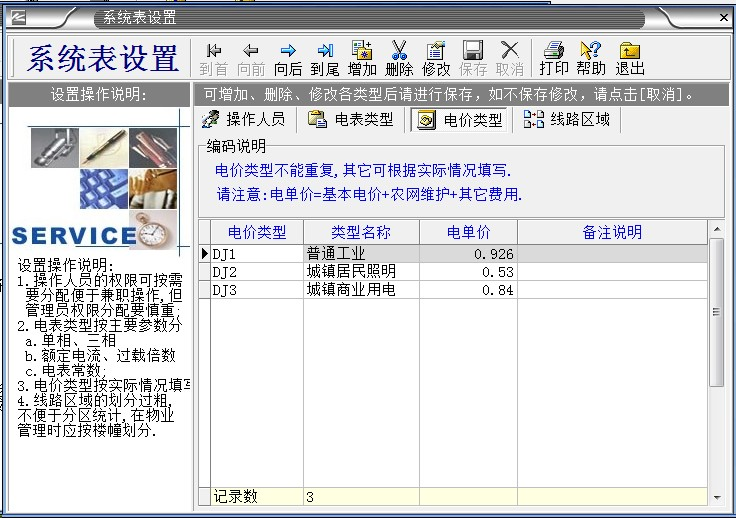3、鼠標左鍵雙擊“電價類型”,按你自己要求填寫