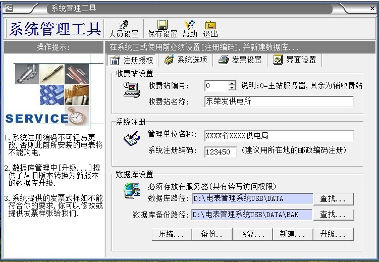2、“系統(tǒng)數(shù)據(jù)”必須備份,如果沒有數(shù)據(jù)備份的話,系統(tǒng)第2次重裝的時候輸入原來第一次系統(tǒng)安裝設置的“系統(tǒng)注冊編碼”,導入備份的數(shù)據(jù)庫,才能使原來安裝的電表正常充值使用。