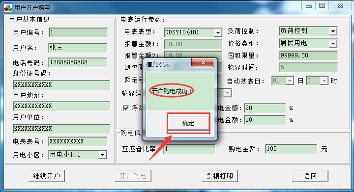 系統提示“開戶購電成功”  單擊“確定”,就開戶完成了。