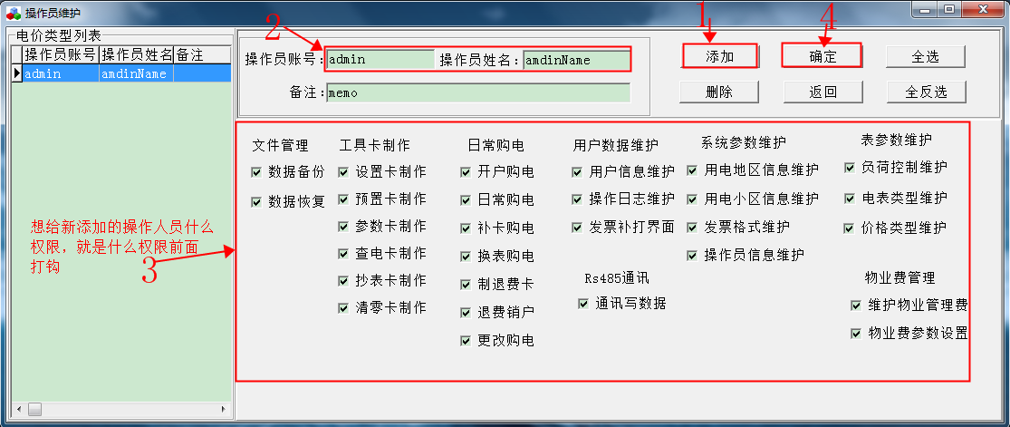 備注:新添加的操作人員登錄密碼是00000000,如需更改,需要用該操作人員登錄,進系統更改密碼。