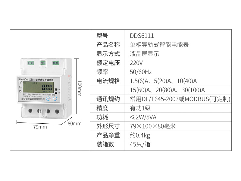DDS6111單相導軌式電表4P(RS485通訊接口)