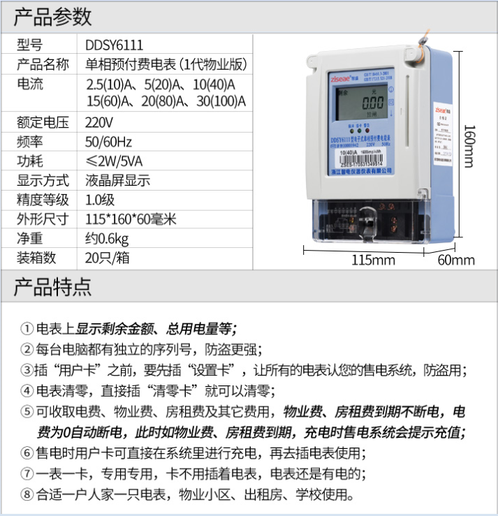 DDSY6111單相預付費電表(1代物業版IC卡插卡式電能表)