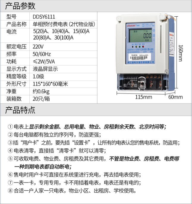 訂購產品: DDSY6111單相預付費電表(2代物業版IC卡插卡式電能表)