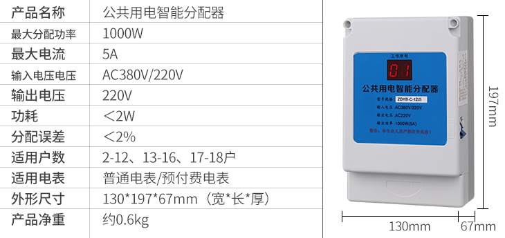 型號:13-18戶公共用電智能分配器