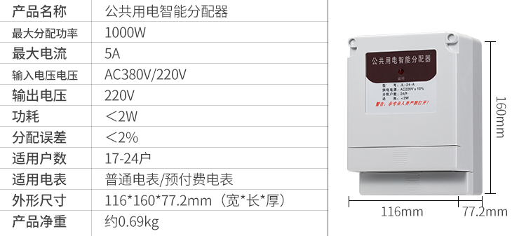 一、智盛牌JL-24-A公共用電智能分配器”是將公共樓道用電所消耗的電能(如樓道燈,對講防盜門等),自動分配到各受益用戶的電表中。每天輪流接通一戶電表,開機(jī)通電時(shí)第一戶電表隨機(jī)產(chǎn)生,達(dá)到公平分?jǐn)傠娰M(fèi)的目的。
