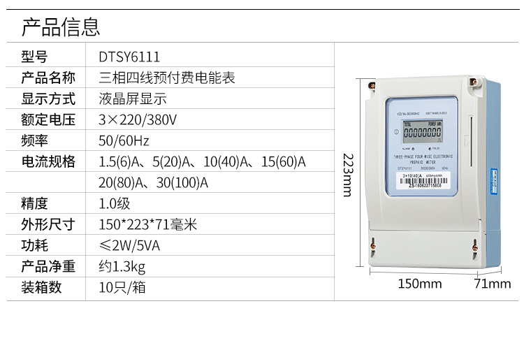 訂購產品: DTSY6111三相四線預付費電表 外貿出口型 英文版