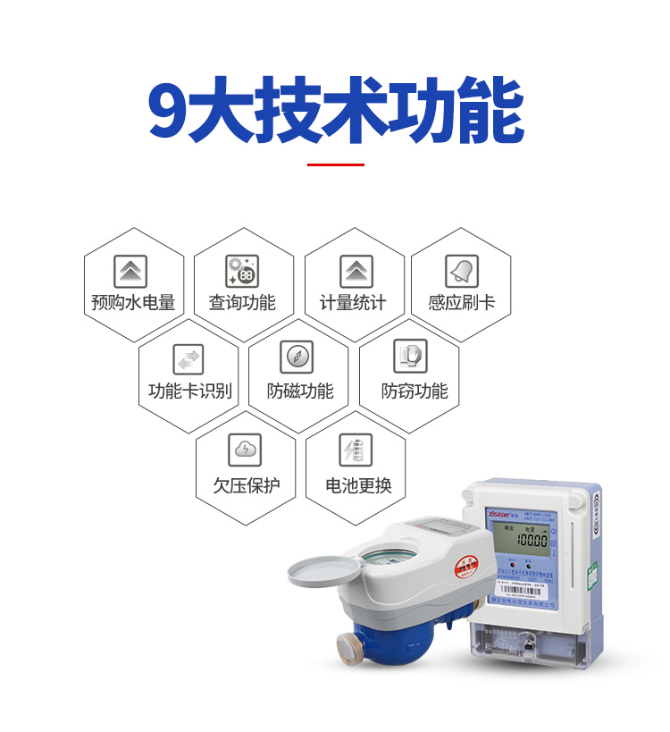 1、概述預(yù)付費(fèi)水表是以旋翼式水表為基表,由干簧管取信裝置、低功耗電控閥門、微電腦控制系統(tǒng)、射頻卡信息系統(tǒng)集合而成的智能水表。該產(chǎn)品改變了傳統(tǒng)的用水收費(fèi)方 式,由“先用水后交費(fèi)”變?yōu)椤跋冉毁M(fèi)后用水”,   每次售水收款都有記錄,解決了“收費(fèi)難、賬目亂”這兩個(gè)水費(fèi)管理工作中的難題。有遠(yuǎn)傳抄表功能的預(yù) 付費(fèi)水表還可實(shí)時(shí)統(tǒng)計(jì)用水?dāng)?shù)量,為水費(fèi)結(jié)算提供依據(jù)。產(chǎn)品符合國(guó)家標(biāo)準(zhǔn)GB/T778-2007《封閉滿管道中水流量的測(cè)量、飲用冷水水表和熱水水表》的全部技術(shù)要求。